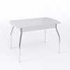 Раскладной кухонный стол со стеклом Стол Чикаго СТ МП 1100(1400)*680*750 Ноги 01 гальваника (стекло Бежевое глянцевое цвет ВН) - практичный и современный предмет мебели, который благодаря большому количеству модификаций подойдет к любому интерьеру и будет долго служить вашей семье.